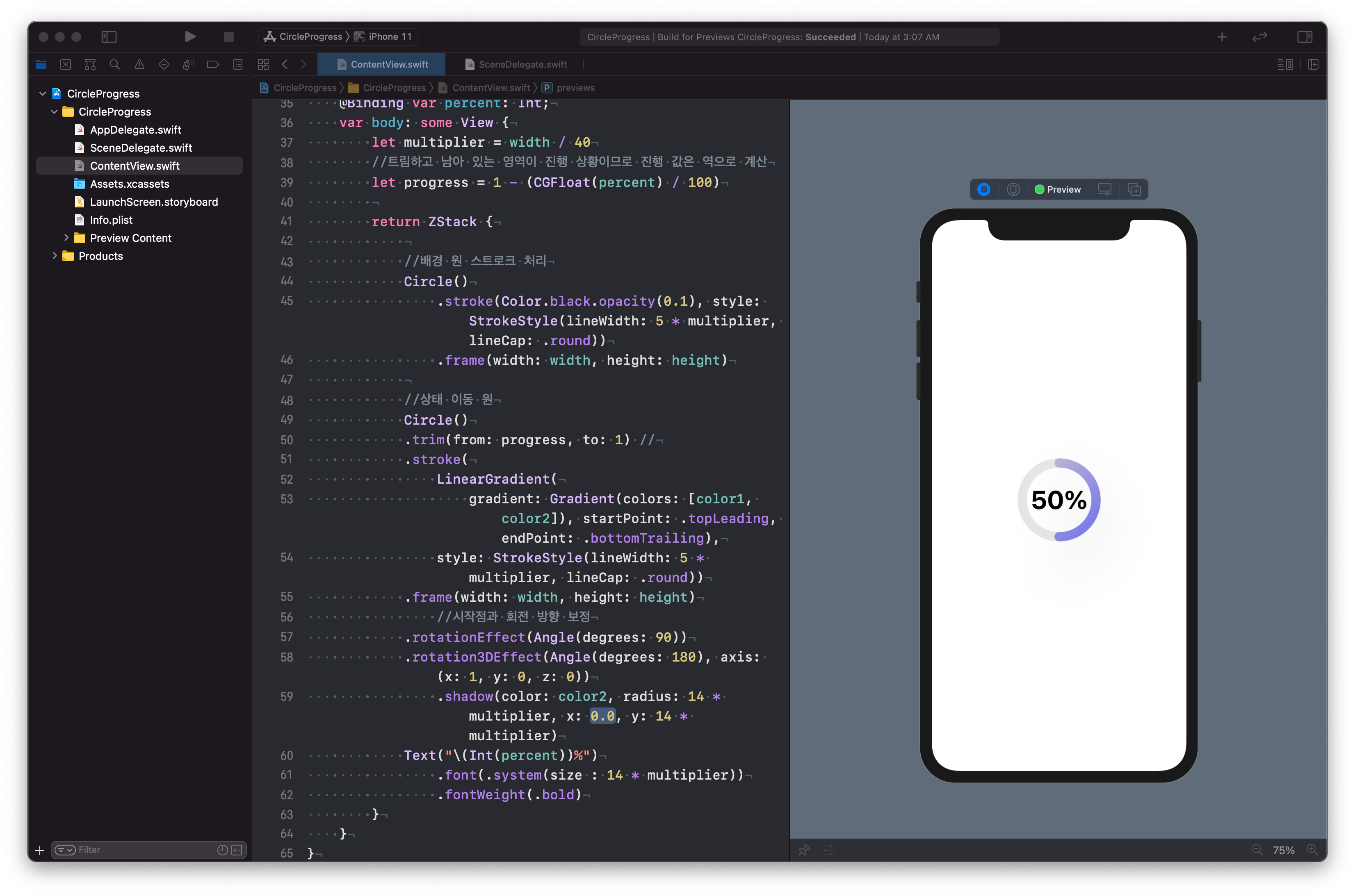 //진행바는 리니어 그라데이션을 이용
