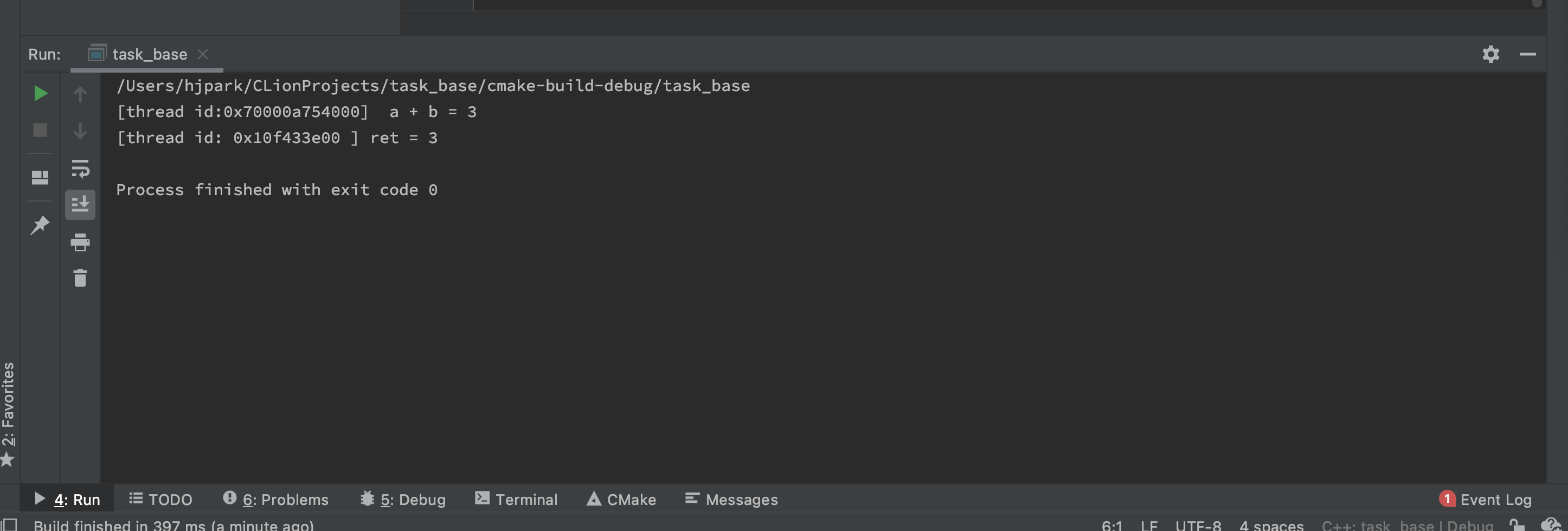 #include <iostream> #include <thread> #include <future> int add(int a, int b) { std::cout << "[thread id:" << std::this_thread::get_id() << "] a + b = " << a + b << std::endl; return a + b; } int main() { //두 int 인자를 받아 int를 반환하는 패키지 태스크 생성 std::packaged_task<int(int, int)> task(add); //태스크의 future 객체 지정 태스크는 내부적으로 promise 객체에 반환 값을 설정 std::future<int> ret = task.get_future(); //태스크 객체를 실행할 스레드 지정 std::thread(std::move(task), 1, 2).join(); std::cout << "[thread id: " << std::this_thread::get_id() << " ] ret = " << ret.get() << std::endl; return 0; }