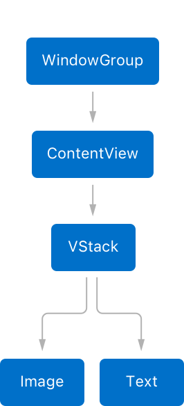 SwiftUI에서 scene은 UI에서 표시될 뷰 계층이 포함되어 있습니다. 뷰 계층은 다른 뷰와 관련된 뷰의 레이아웃을 정의합니다. 이 예제에서 WindowGroup Scene은 다른 뷰를 구성하는 ContentView가 포함되어 있습니다.